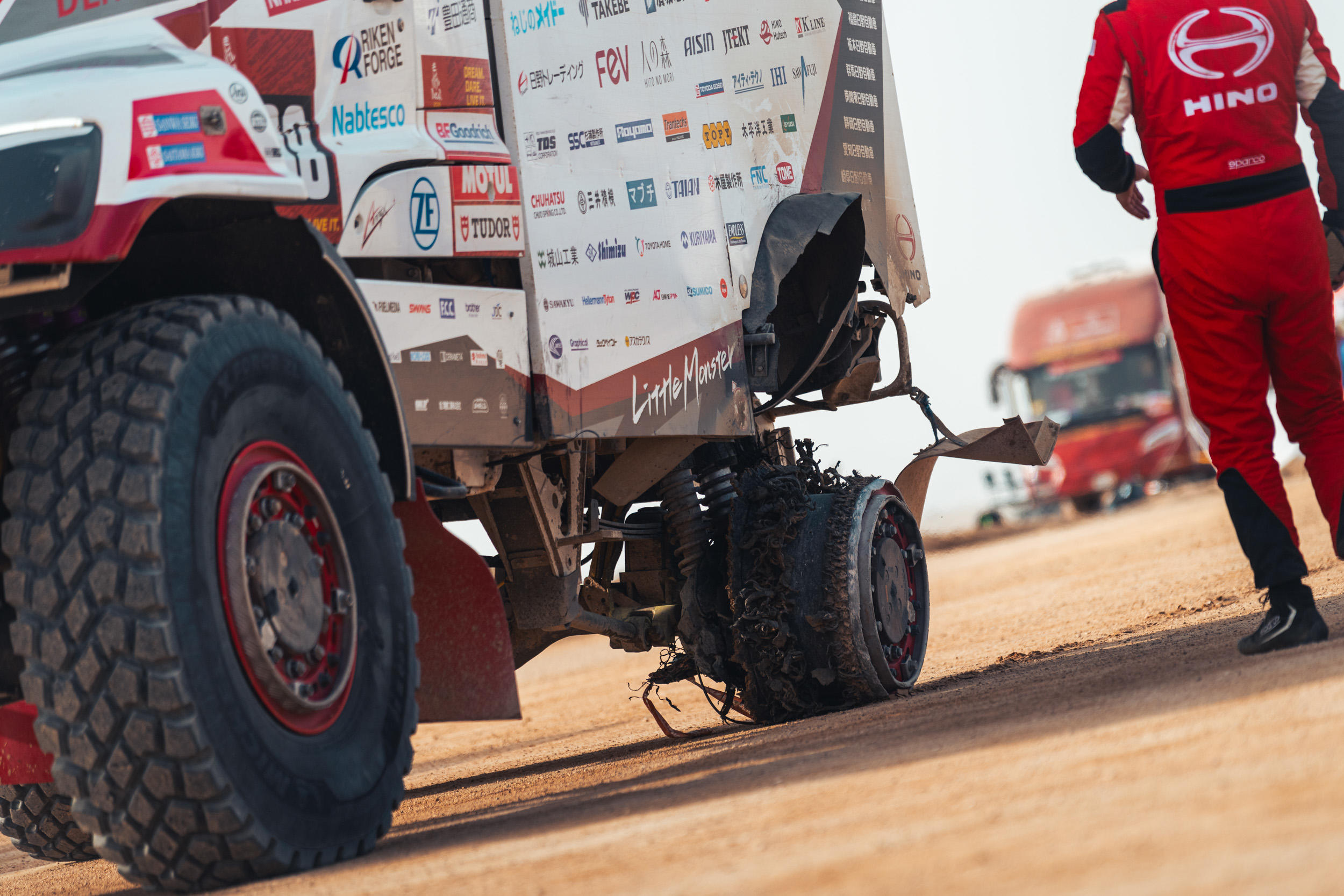 レース前半は大きなトラブルなく好調な走りを重ね、トラック部門8位を維持していましたが、後半はさまざまなトラブルが襲いかかりました。砂丘ステージでの転倒、車内で選手同士がコミュニケーションを取るためのインカムの不調、2025年大会でも頭を抱えたトランスファの破損、追い打ちをかけるような最終日のタイヤバーストなど、日を重ねるごとにチームの粘り強さが試される展開となりました。詳細はデイリーレポートでご覧いただけます。