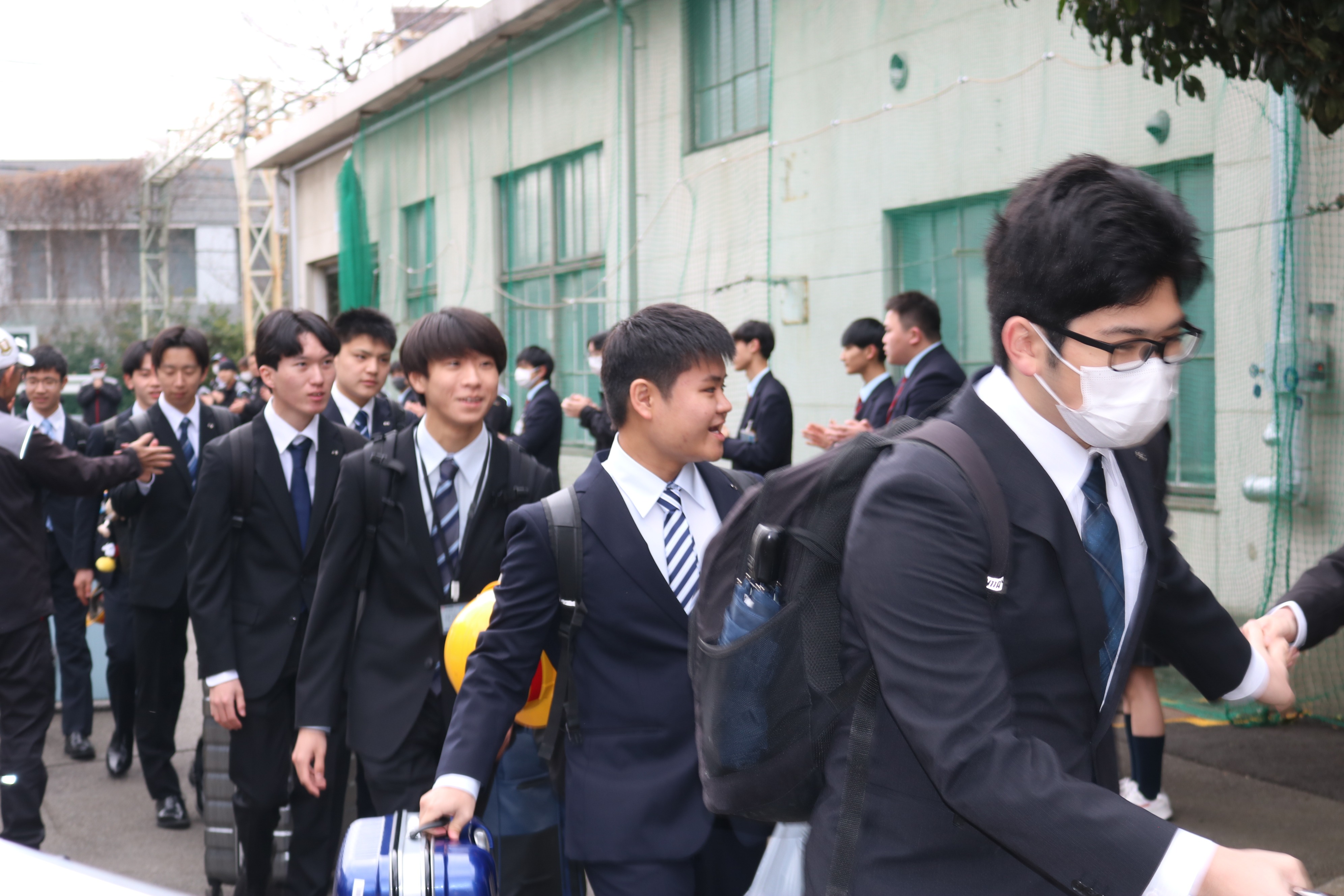 当日は、在校生と教員からのあたたかい拍手の花道を通って学園を出発しました。