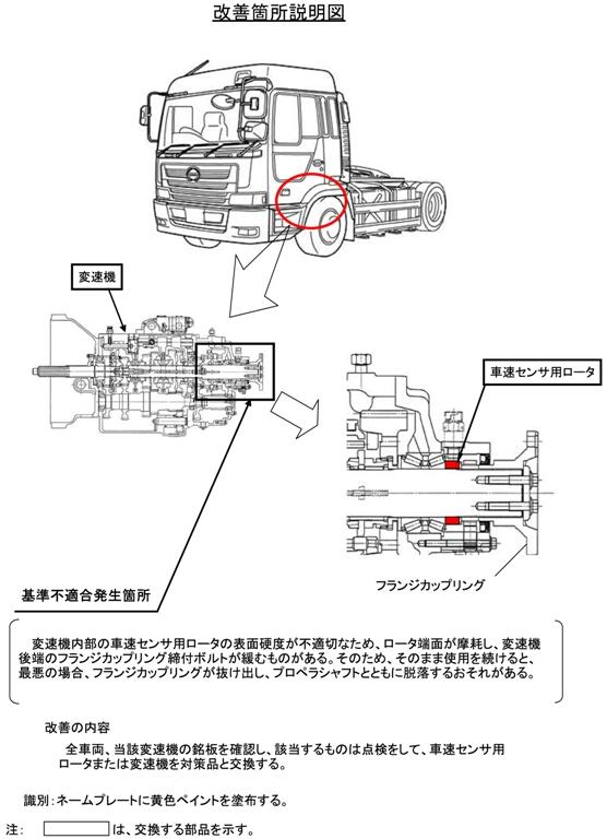 2.改善の内容 全車両、当該変速機の銘板を確認し、該当するものは点検をして、車速センサ用ロータまたは変速機を対策品と交換します。