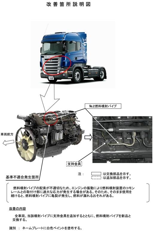 2.改善の内容 全車両、当該噴射パイプに支持金具を追加するとともに、燃料噴射パイプを新品と交換します。