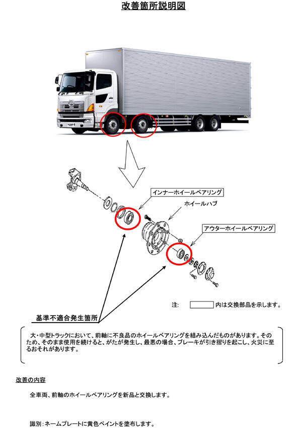 2.改善の内容 全車両、前軸のホイールベアリングを新品と交換します。