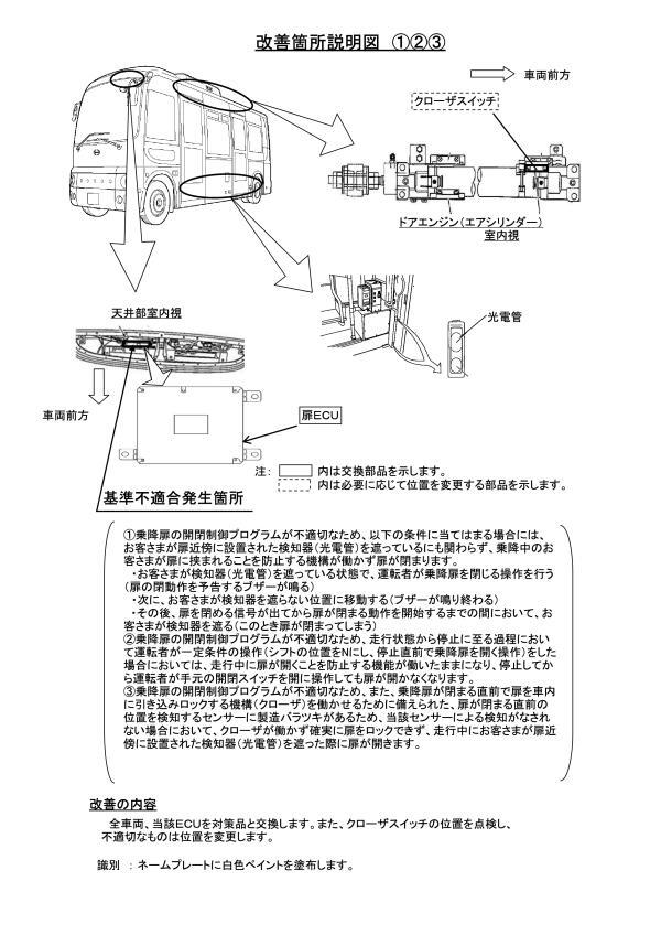 2.改善の内容 全車両、当該ECUを対策品と交換します。また、クローザスイッチの位置を点検し、不適切なものは位置を変更します。