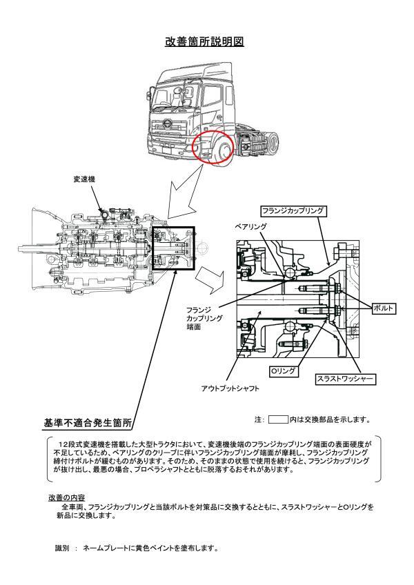 2.改善の内容 全車両、フランジカップリングと当該ボルトを対策品に交換するとともに、スラストワッシャ-とOリングを新品に交換します。