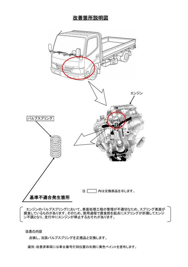 2.改善の内容 点検し、当該バルブスプリングを正規品に交換します。 改善箇所説明図