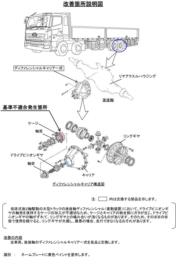2.改善の内容 全車両、後後軸のディファレンシャルキャリア一式を良品と交換します。
