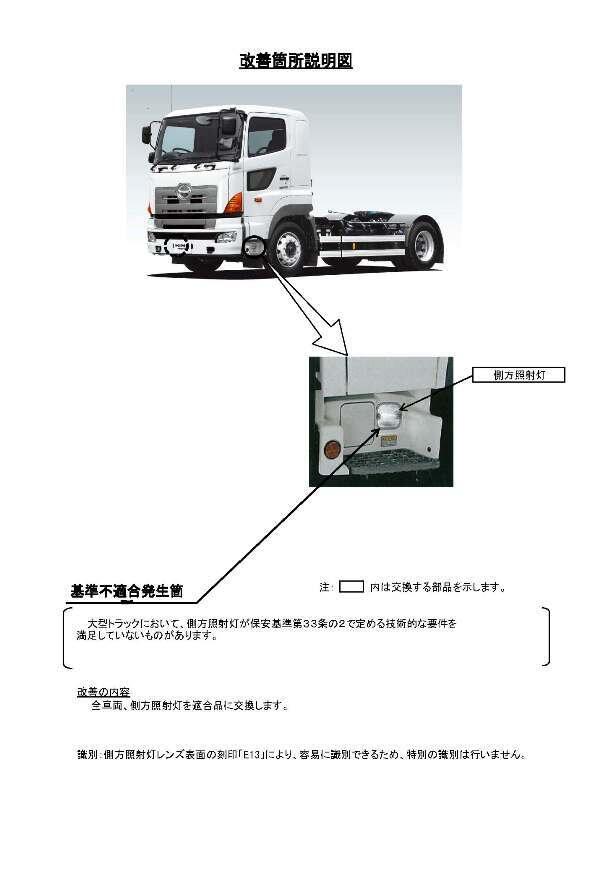2.改善の内容 全車両、側方照射灯を適合品に交換します。
