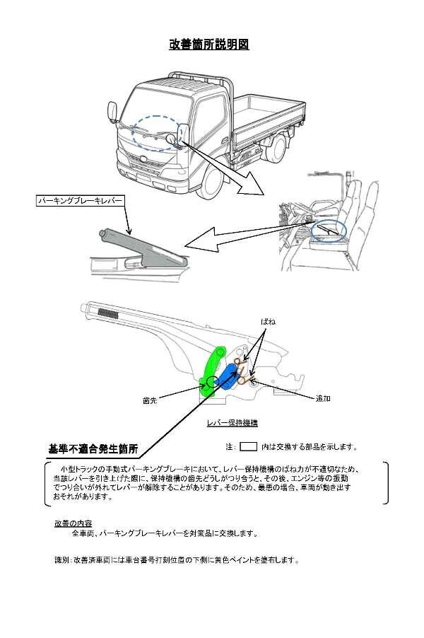 2.改善の内容 全車両、パーキングブレーキレバーを対策品に交換します。