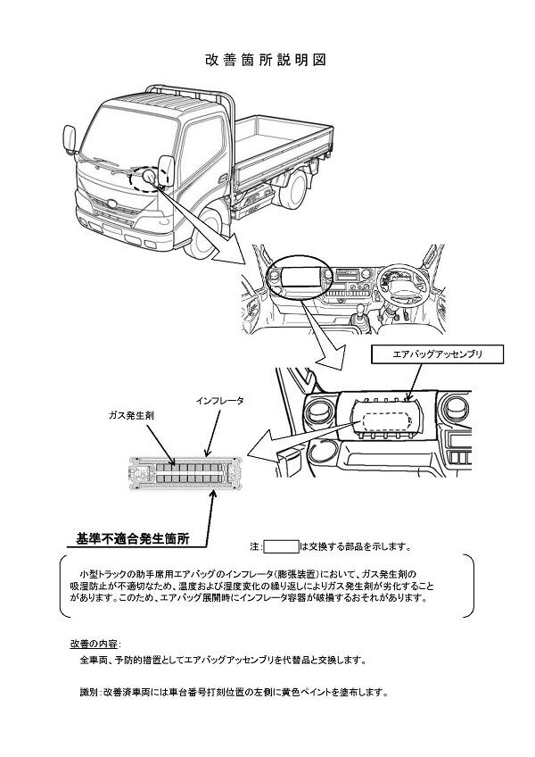 2.改善の内容 全車両、予防的措置としてエアバッグアッセンブリを代替品と交換します。
