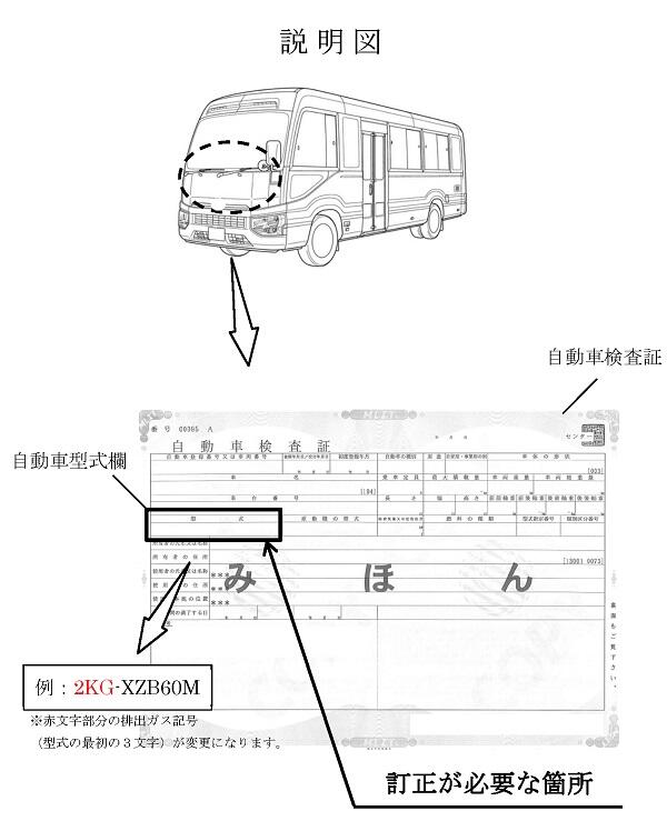 2.改善の内容 全車両、変更後の型式に訂正した車検証に交換させていただきます。