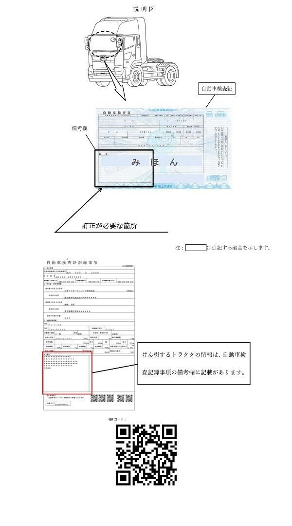 2.改善の内容 トラクタの使用者にけん引するトレーラの車検証備考欄にトラクタの型式が記載されているものは変更後の型式を追記する必要があることを周知するとともに、当該車両がけん引する全てのトレーラの車検証備考欄を確認し、変更後のトラクタの型式が記載されていない場合は追記します。
