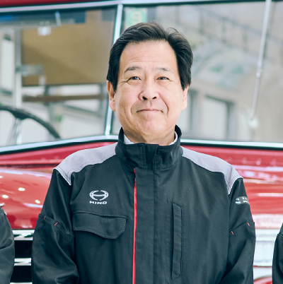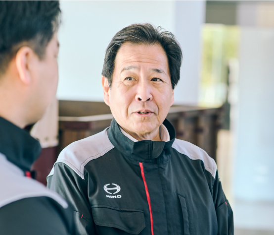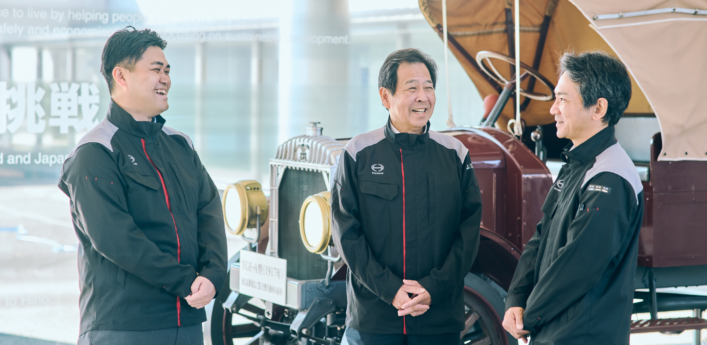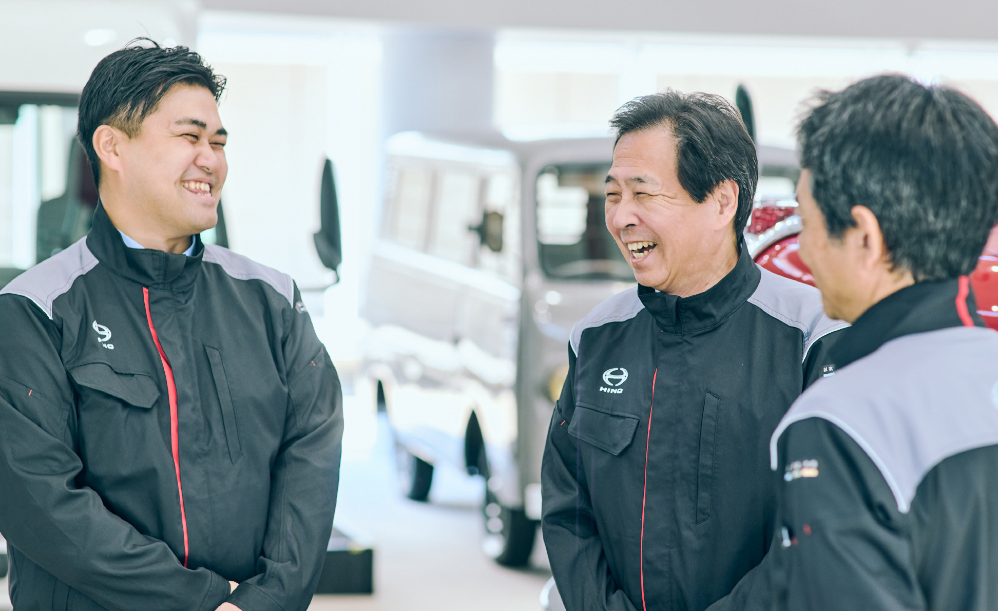 - チームワークは本当に大切ですね。私が若手時代に教わった言葉に「慈愛の心」があります。親が子を想うような思いやりを持って、仲間やお客様に接する。それが「誠実」な対応につながり、結果として信頼という形で返ってくる。この精神こそが日野の強みです。