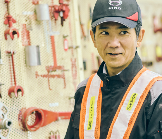 - 私の時代も、「お客様のために稼働を止めない」という意識は、先輩たちの背中を通じて自然と叩き込まれましたね。特に海外の現場では、トラックはお客様にとって大切な「商売道具」であり、日野の車両に対して非常に強い思い入れを持ってくださっている方が大勢いらっしゃいます。そうしたお客様一人ひとりの想いに真剣に向き合い、何としてもその期待に応えなければならないという責任感を、現場での経験を通じて強く感じてきました。