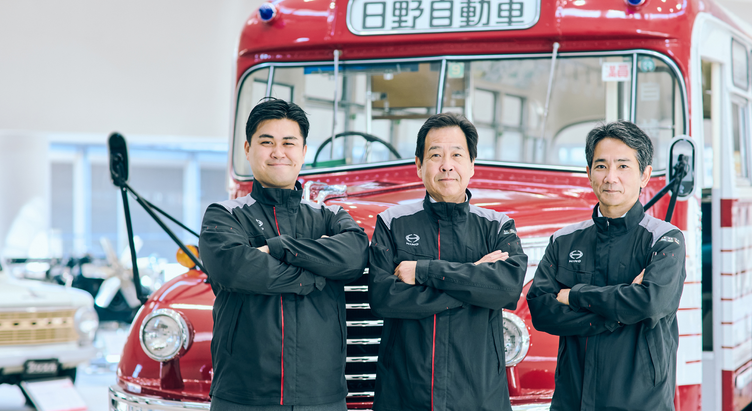 私たちが提供するのは、単なる「トラック」という製品だけではありません。お客様の車両が止まることなく走り続けられるよう、全力で寄り添う「トータルサポート」こそが、日野の真髄です。その源流は1963年に発足した「フィールドメカニック制度」にあります。かつて工具を手に砂漠や僻地へ駆けつけたメカニックたちの情熱は、今、高度な技術でビジネスを支える「フィールドサービスエンジニア」へと受け継がれています。世代を超えた3名が語る、現場で培われた日野のDNAをぜひ知ってください。